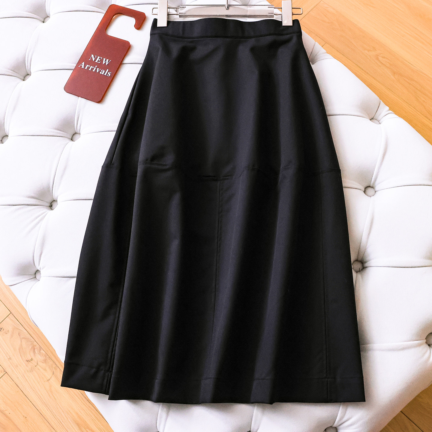 赫本风纯色半松紧腰显瘦小黑裙大摆裙伞裙中长款女裙半身裙Q538