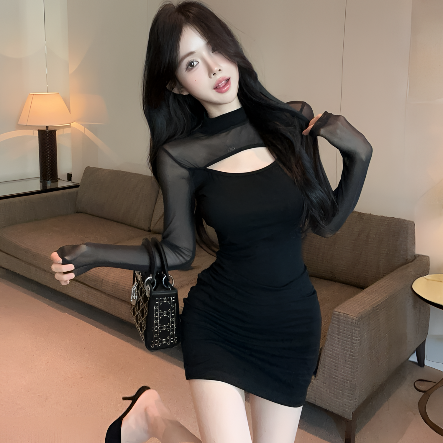 辣妹包臀短裙纯欲设计感连衣裙性感包臀裙镂空内搭收腰显瘦小黑裙