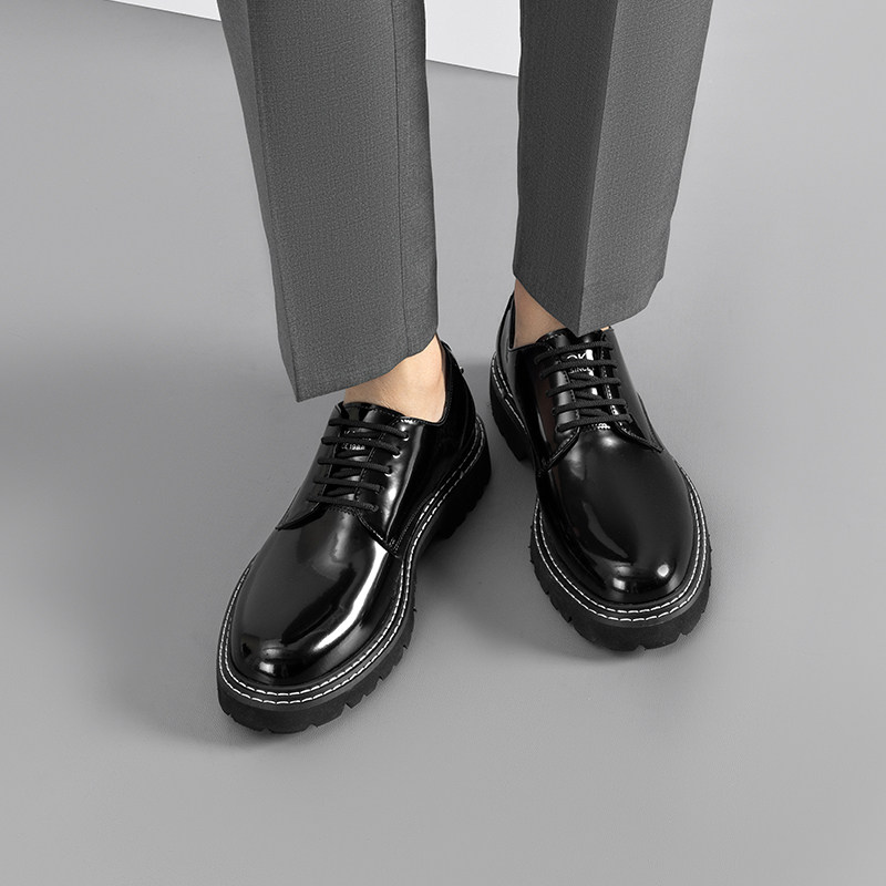 厚底皮鞋男款2025新款真皮亮面男鞋英伦风圆头商务正装休闲德比鞋