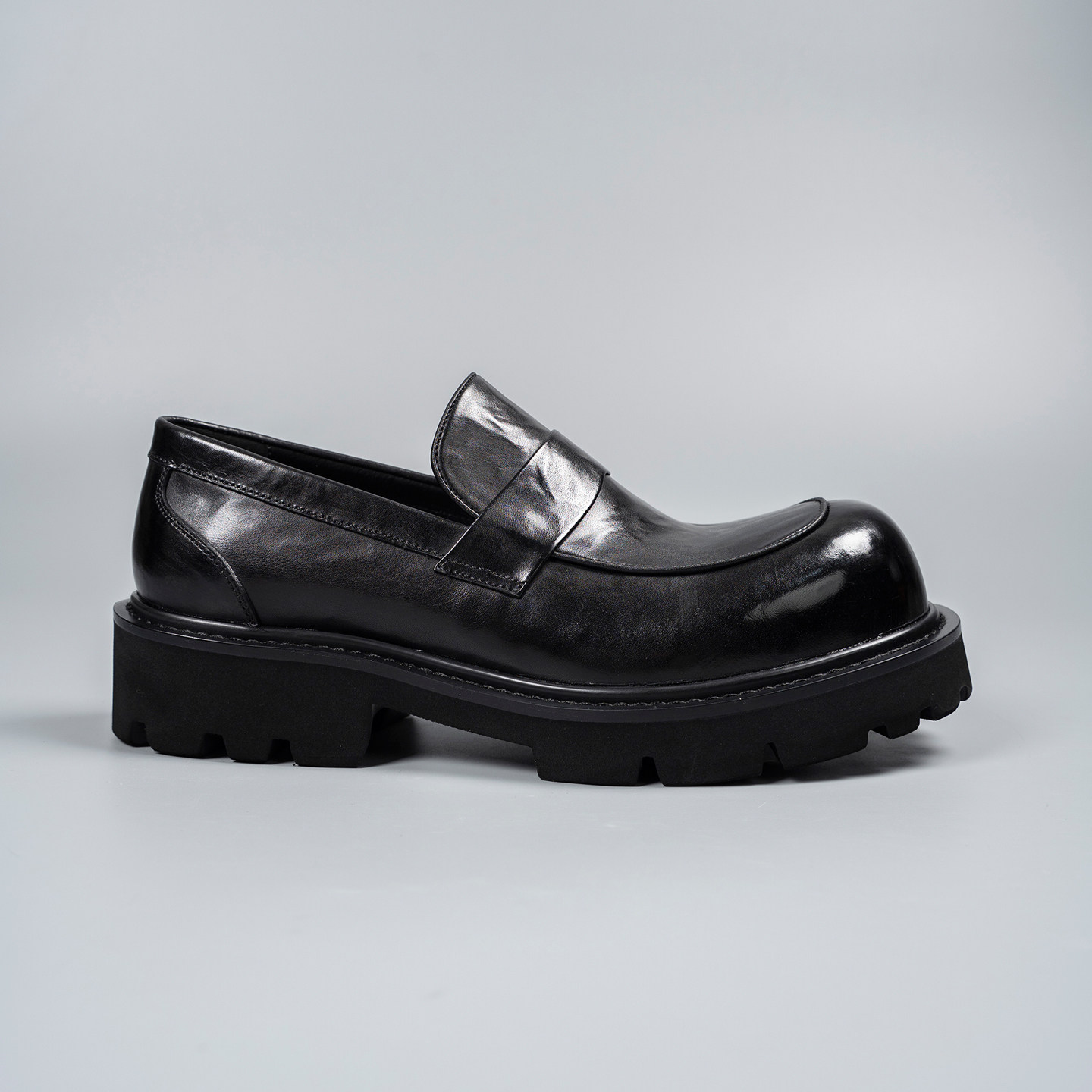 英伦风大头德比皮鞋男款头层牛皮一脚蹬休闲圆头增高厚底亮面男鞋