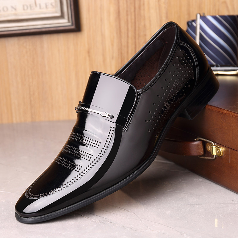 夏季新款镂空透气漆皮亮面男鞋商务休闲一脚蹬豆豆鞋打孔男士皮鞋