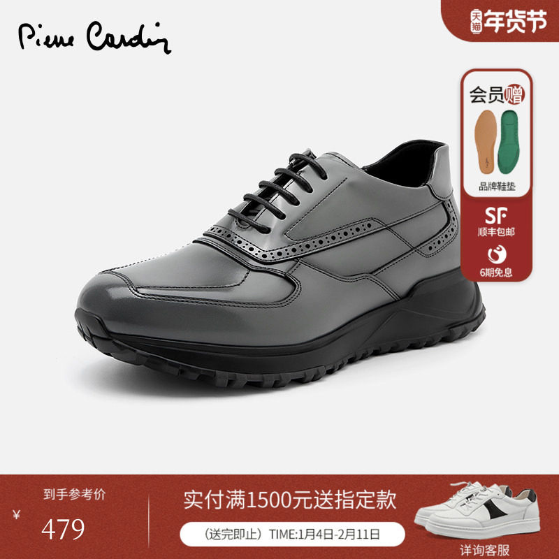 Pierre Cardin/皮尔卡丹男鞋商场同款轻厚底休闲鞋真皮亮面