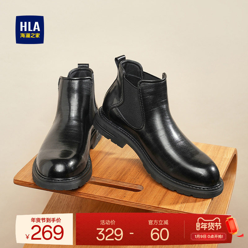 HLA/海澜之家男鞋新款秋冬亮面时尚套脚靴子休闲切尔西靴英伦皮鞋