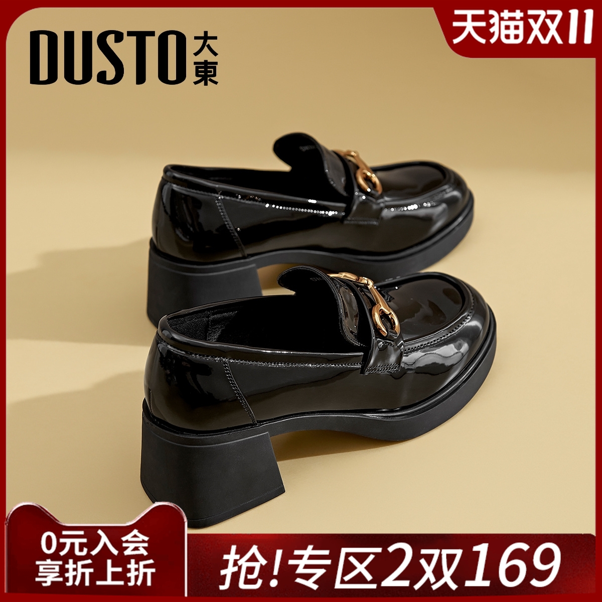 大东粗跟高跟小皮鞋女秋季2025新款玛丽珍女鞋黑色英伦乐福鞋单鞋