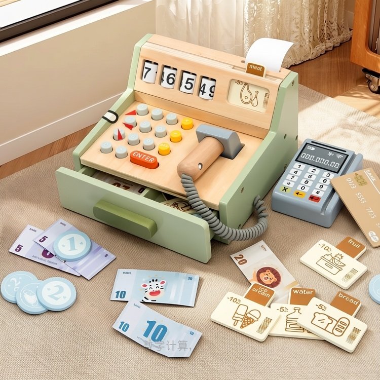 儿童木质便利店超市收银机玩具益智过家家男女孩子3到6岁生日礼物