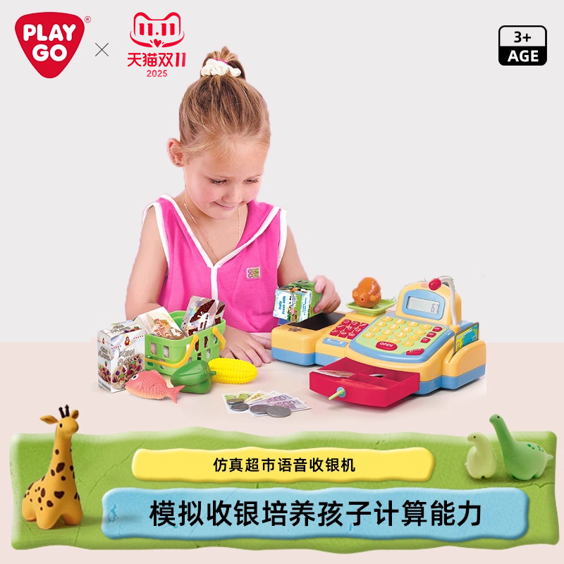 playgo儿童超市收银机玩具宝宝仿真多功能收银台过家家女孩套装