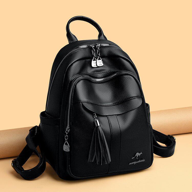 - 黑色双肩包女 真皮