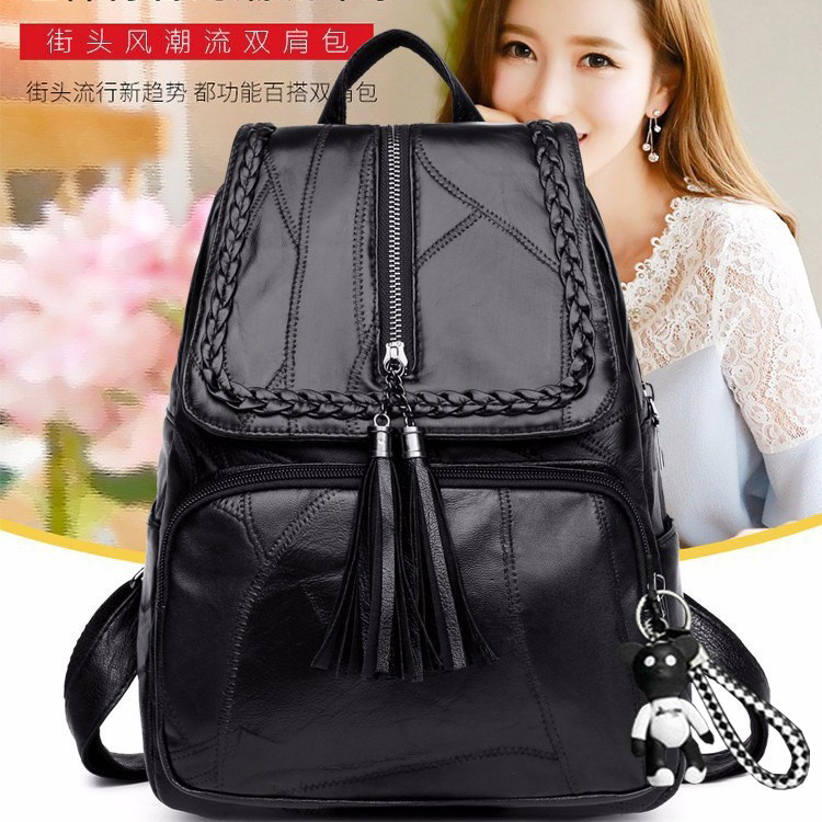 流苏双肩包女2023新款百搭软皮质休闲清新街头时尚大容量女士揹包
