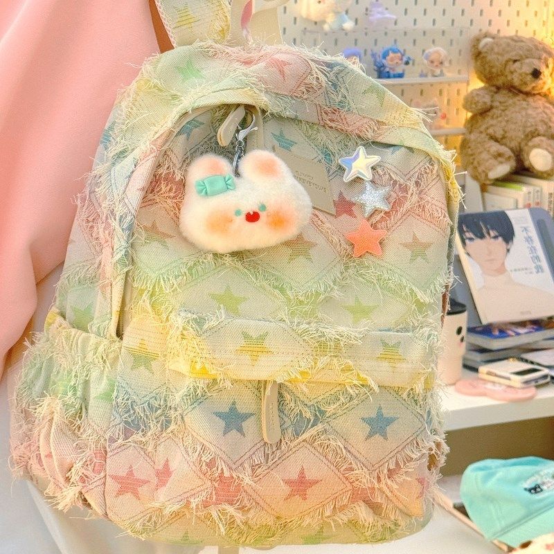 高颜值书包女韩版初中女生高中生渐变流苏双肩包小众少女学生背包
