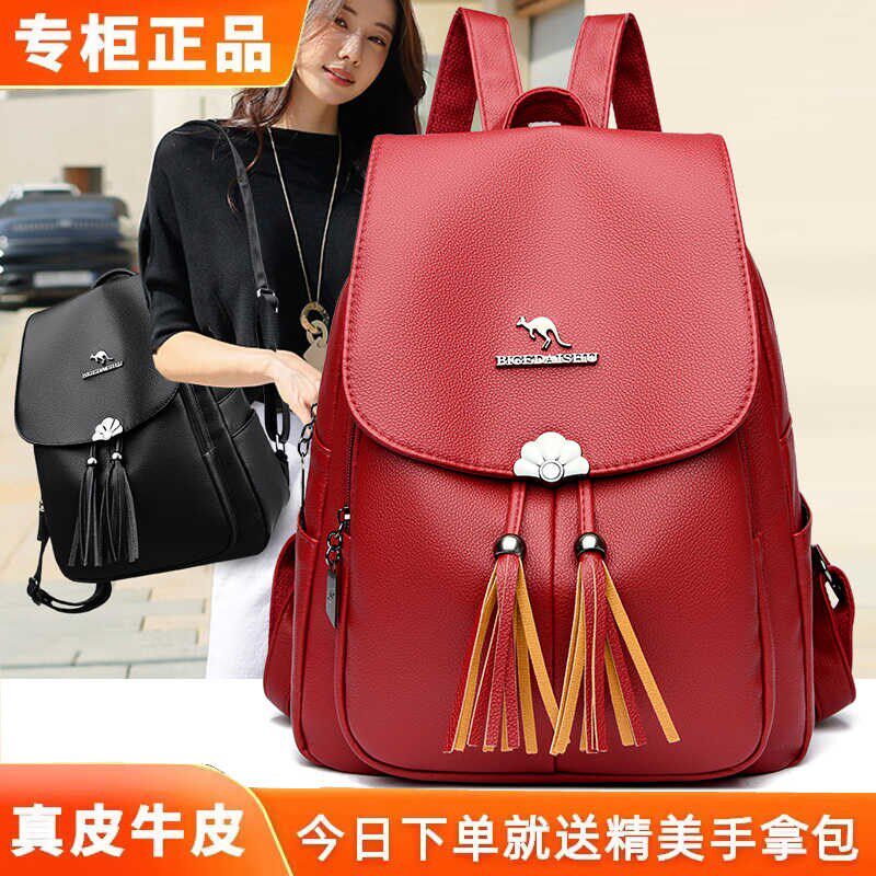 真牛皮双肩包女2024新款潮流女士大容量背包百搭通勤休闲时尚流苏