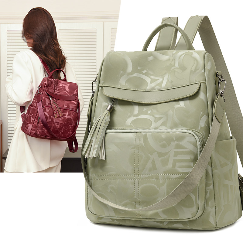 流苏双肩包女2024新款韩版简约牛津布休闲女士背包学生翻盖书包