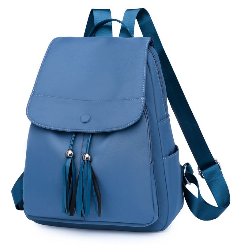 牛津布双肩包女2025新款韩版流苏翻盖小背包网红纯色轻便旅行背包