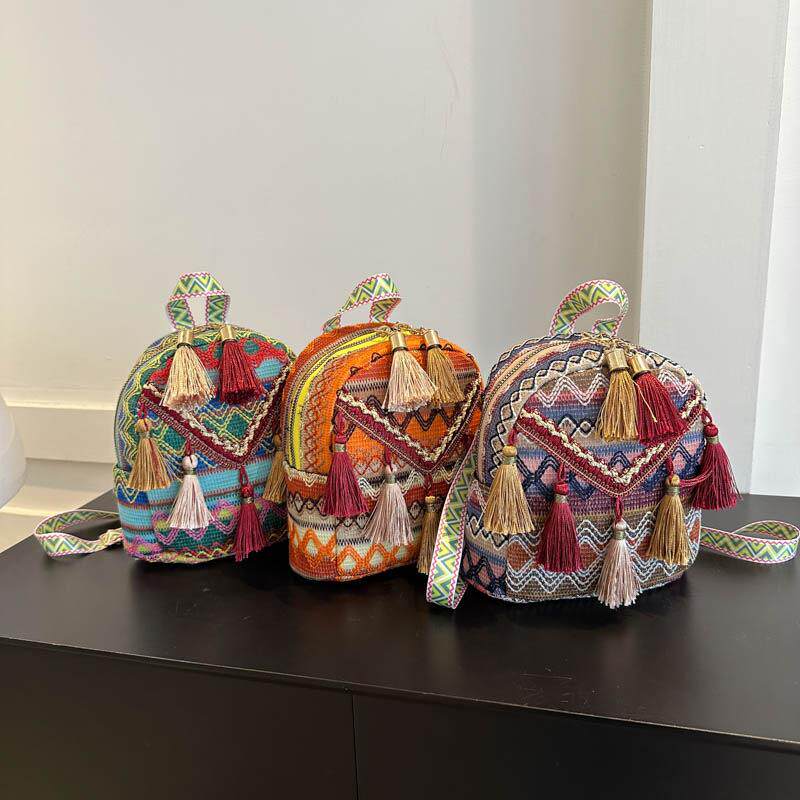 2025新款轻便女双肩包民族风流苏斜挎包包外出旅行时尚百搭小背包