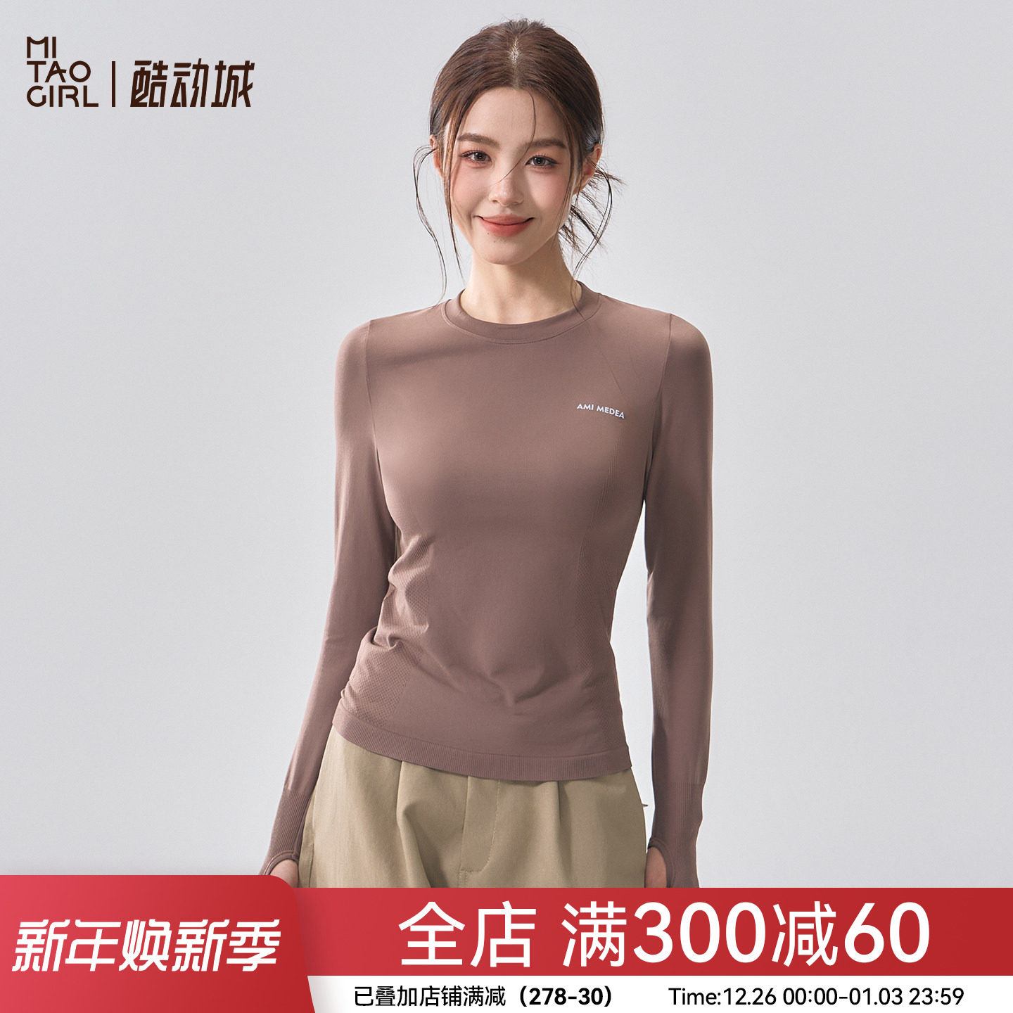 Mitaogirl无缝长袖瑜伽服女修身上衣跑步运动户外训练速干健身服