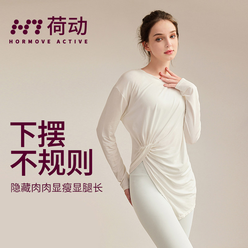 荷动/新款开叉显瘦透气速干健身服修身运动上衣瑜伽服女长袖罩衫