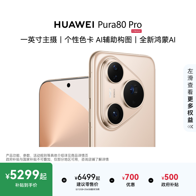 【12期免息】HUAWEI Pura 80 Pro一英寸主摄 个性色卡 AI 辅助构图 鸿蒙智能手机华为官方旗舰店