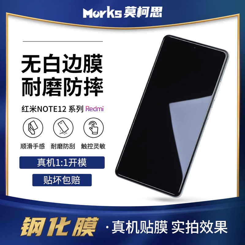 莫柯思适用红米note12tPro+钢化膜11Pro全屏12turbo电镀11tpro防指纹Redmi手机9 5G绿光note8大弧pro无白边4G