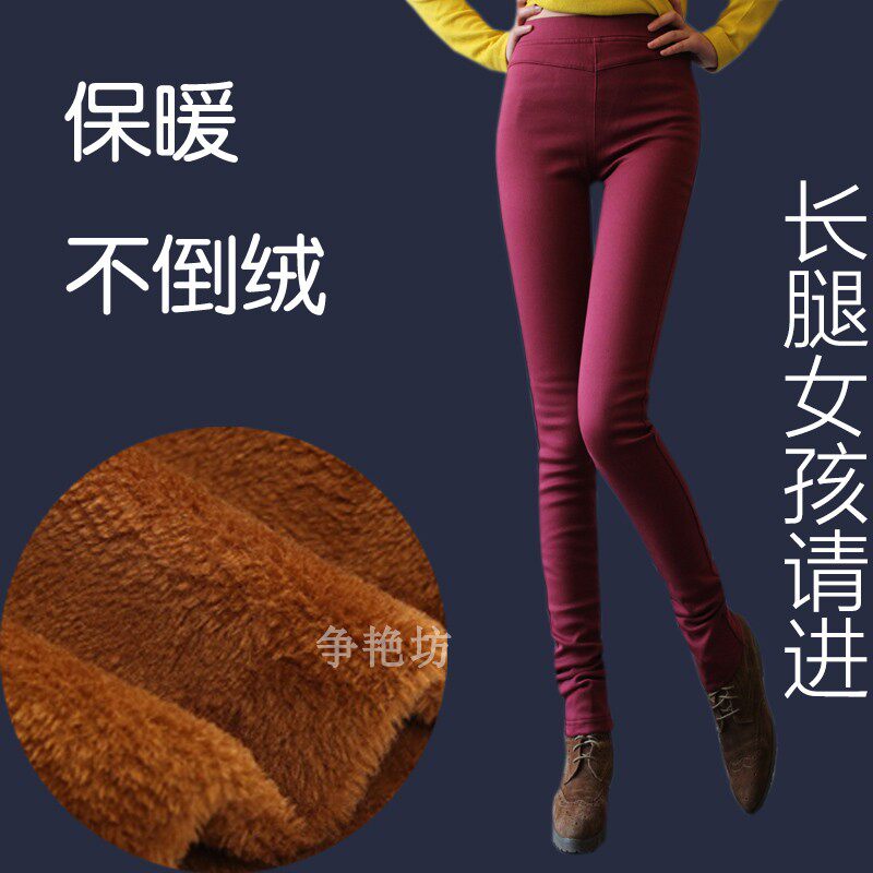 秋冬加薄绒彩色高个子贴身小脚裤枣红色墨绿色小码加长女柔软弹力
