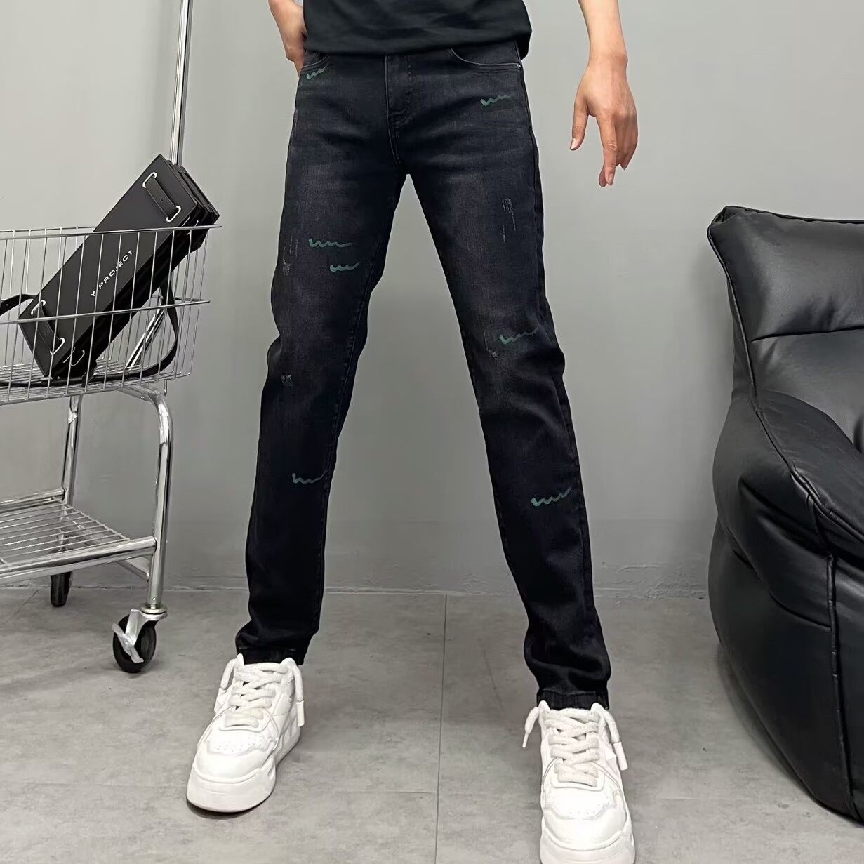 - 黑灰色牛仔裤