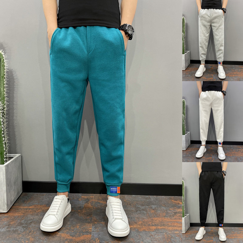 D17秋冬男士加绒休闲卫裤百搭彩色松紧腰弹力保暖小脚裤加厚舒适K