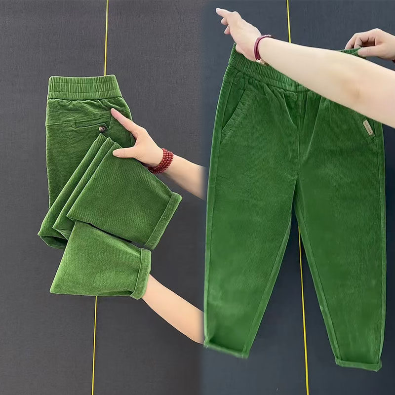 欧货秋季爆款彩色灯芯绒休闲裤女高腰宽松百搭哈伦萝卜小脚九分裤