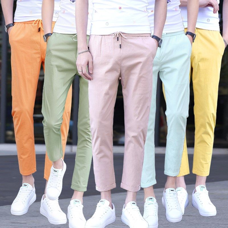 2024夏季彩色男裤子潮弹力糖果色休闲九分裤修身小脚韩版百搭9分