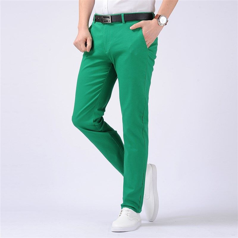 秋季彩色男士休闲裤浅绿色韩版修身小脚酒红色纯棉弹力长裤子潮流