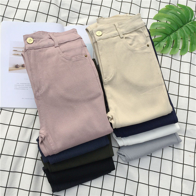 2021秋冬彩色休闲裤女小脚裤修身显瘦铅笔裤弹力长裤子学生牛仔裤