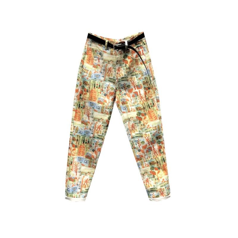 春秋款彩色鎏金印花紧身小脚裤女时尚个性修身百搭显瘦高腰九分裤