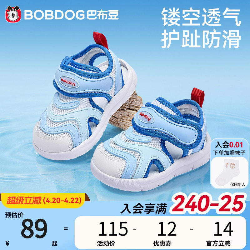 安踏学步鞋宝宝凉鞋夏季新款包头沙滩鞋男女童婴幼儿鞋透气软底鞋