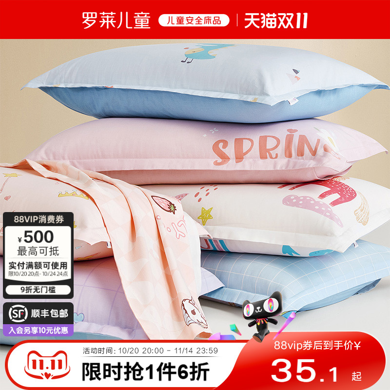 罗莱儿童家用全棉学生宿舍枕头套枕套纯棉枕芯袋内胆套单只一对装