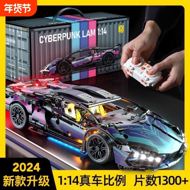 积木2024新款兰博基尼跑车模型遥控汽车赛车男孩拼装玩具生日礼物
