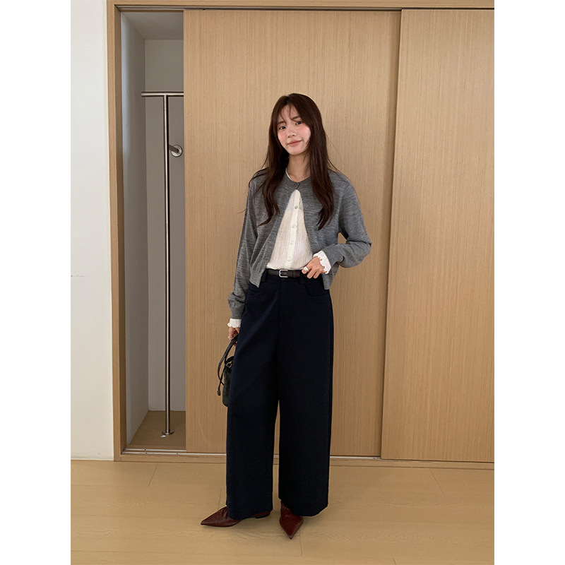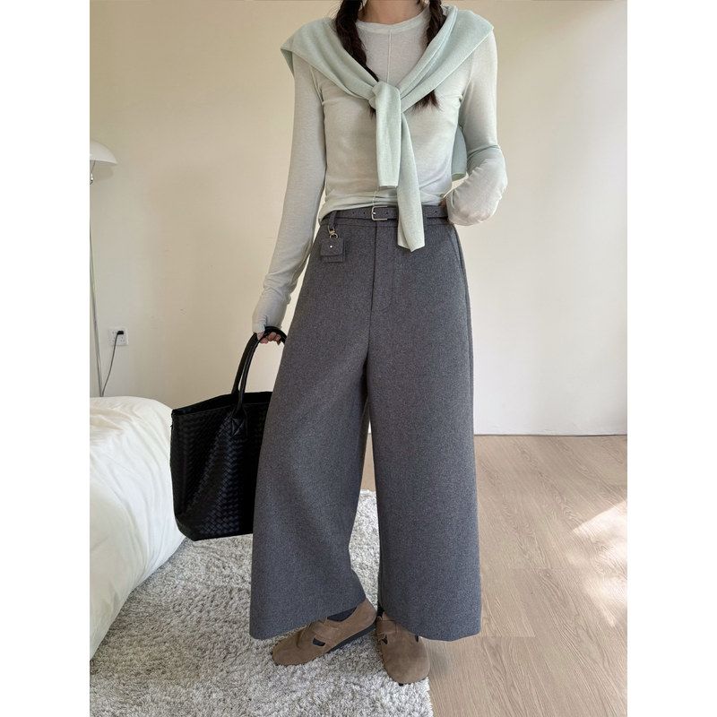 ICC 十三行新款羊毛呢阔腿九分裤女简约高级感显瘦休闲裤女款1109