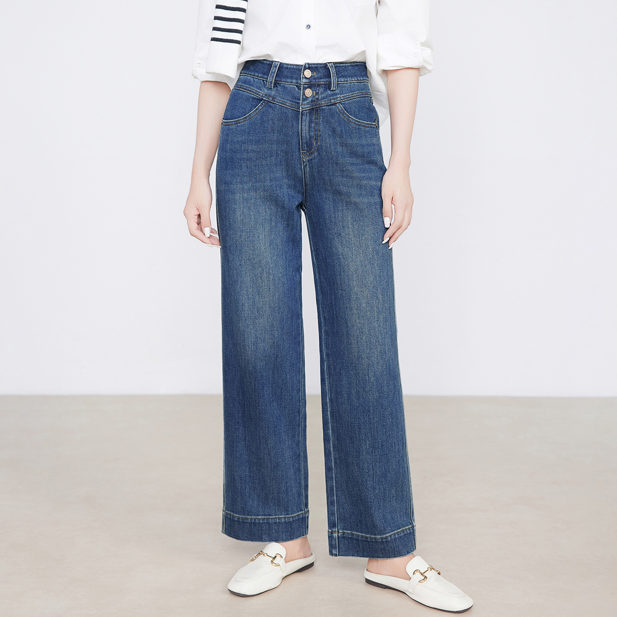 裤子女款2025新款高腰双扣小个子九分直筒牛仔裤大码胖mm显瘦阔腿