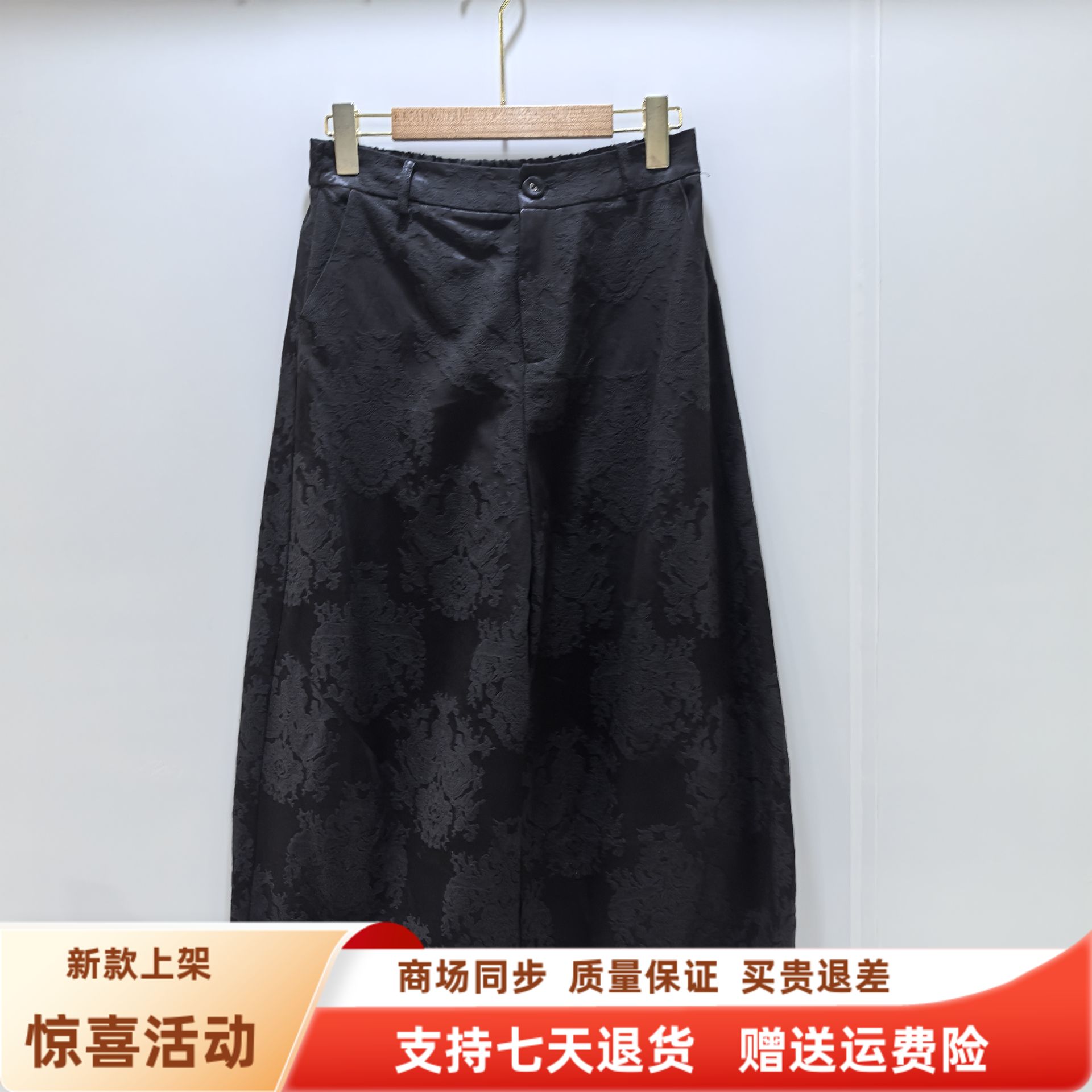 S26CK182新中式国风休闲显瘦高腰提花秋装2025女款直筒九分阔腿裤