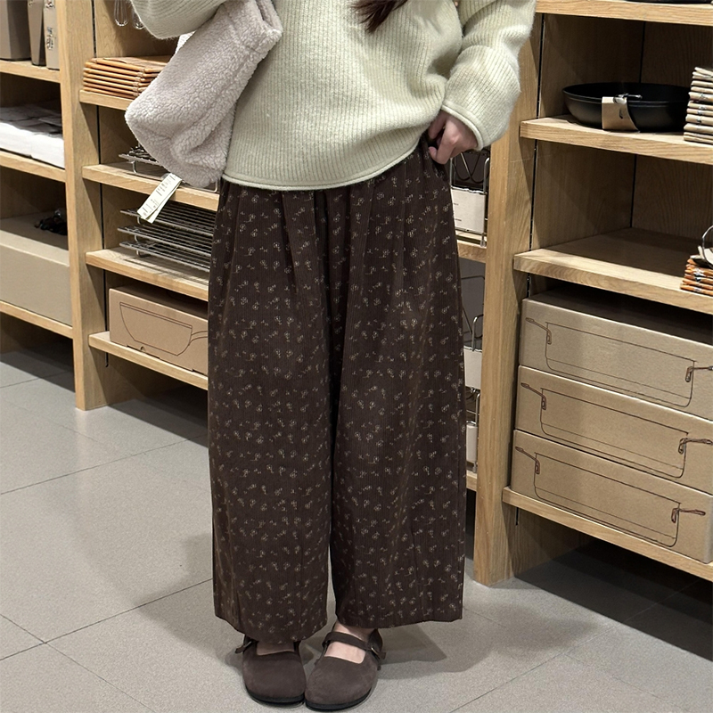 美拉德小个子碎花九分裤子女款大码胖mm显瘦休闲灯芯绒阔腿气球裤