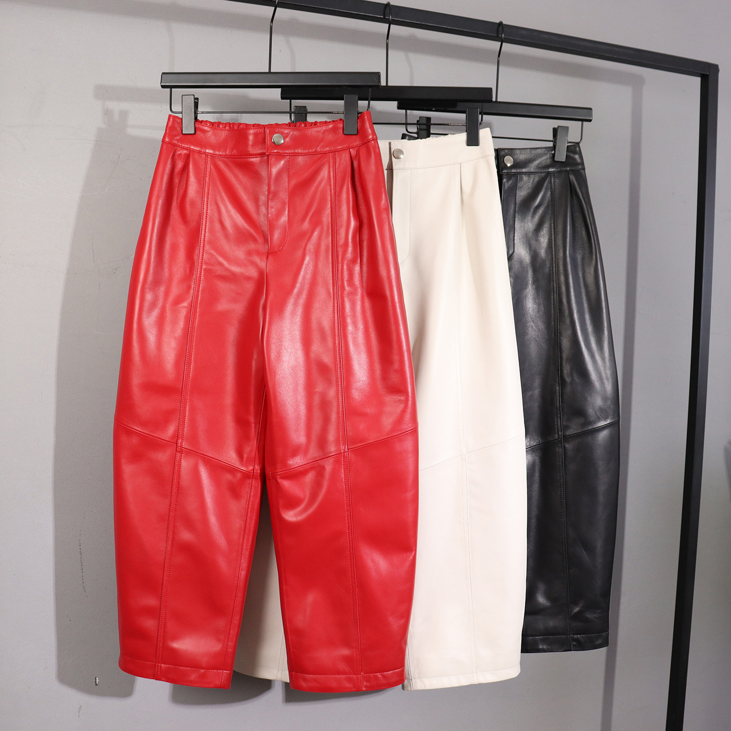 新款真皮皮裤女款绵羊皮九分裤休闲阔腿洋气哈伦裤时尚显瘦萝卜裤