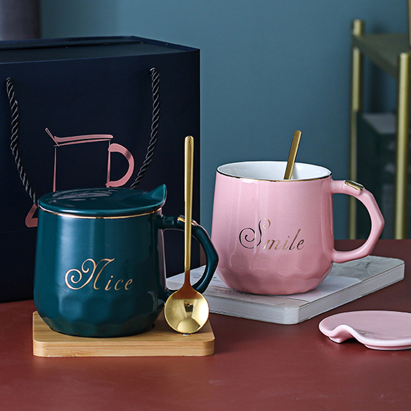 - 情侣杯子 陶瓷 带盖