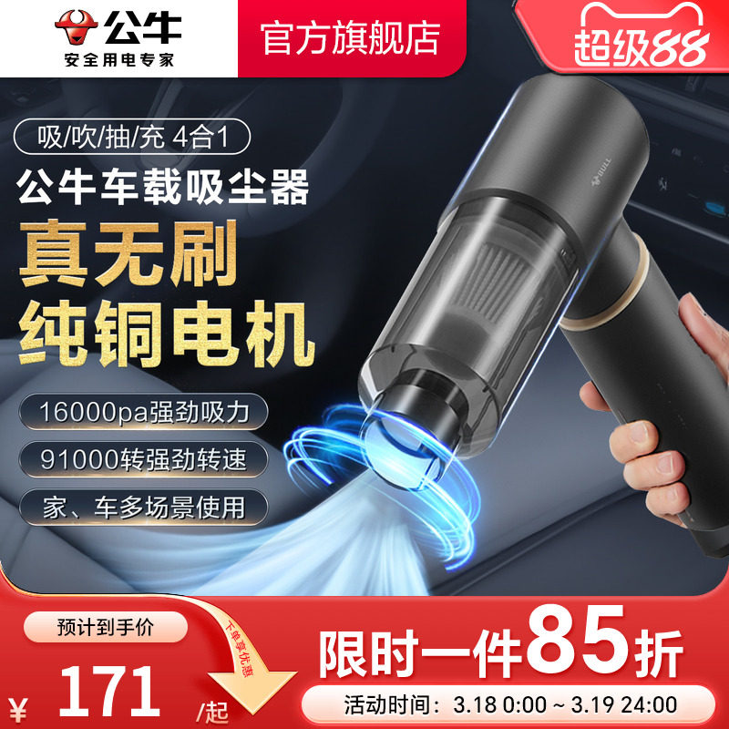 公牛车载吸尘器大吸力小型汽车无线超强吸力充电手持车用家用专机