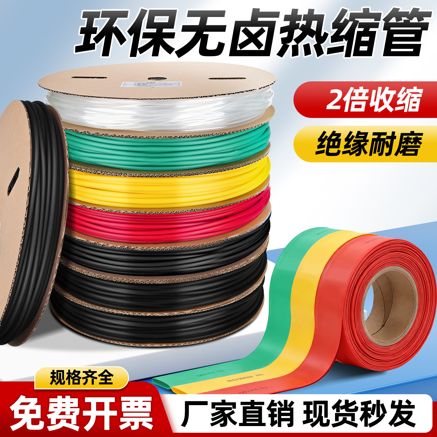 电工黑色热缩管热收缩绝缘套管低压热缩带透明白色热塑缩管黄绿色