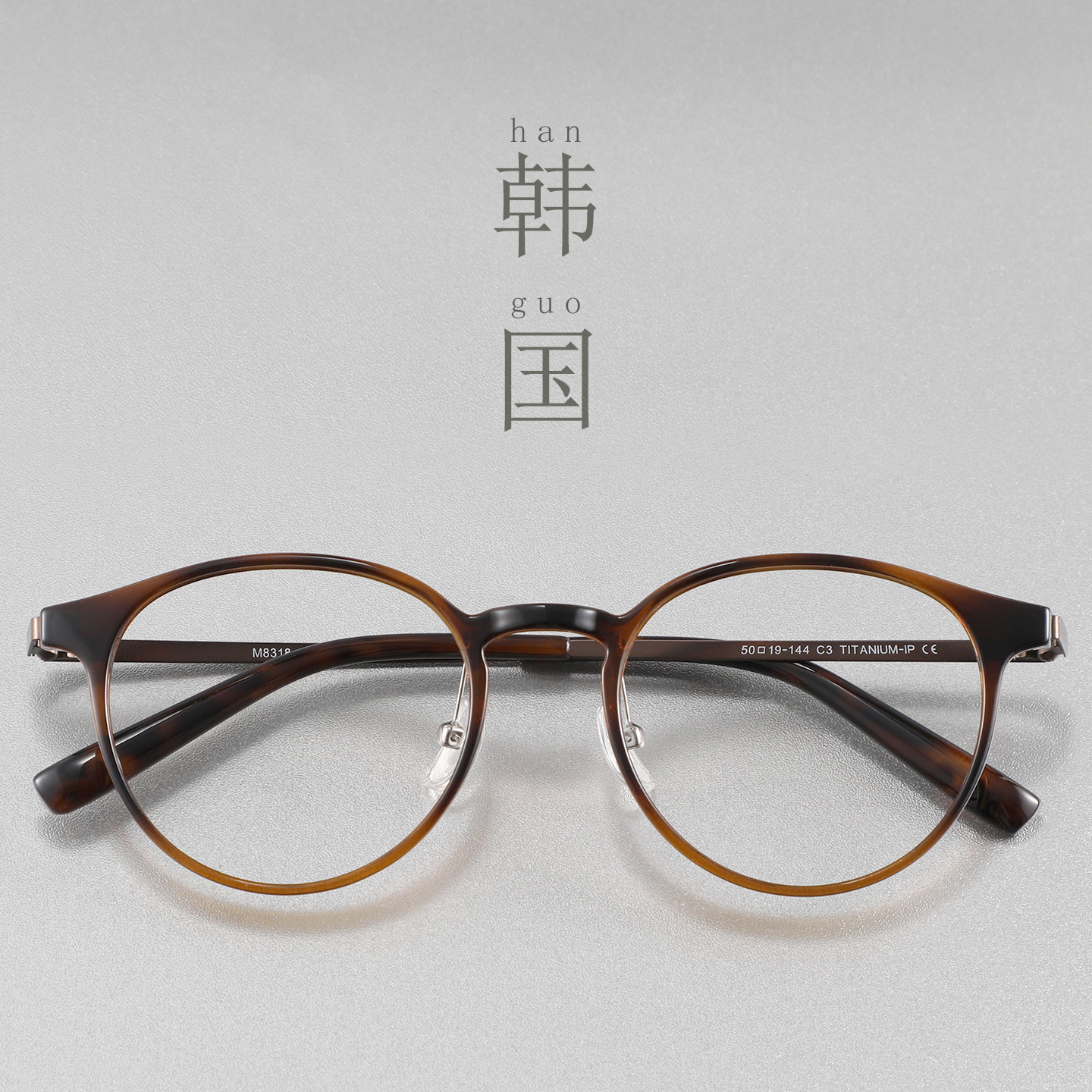 韩国超轻纯钛眼镜框女可配高度数素颜文艺圆框茶色防蓝光近视眼睛