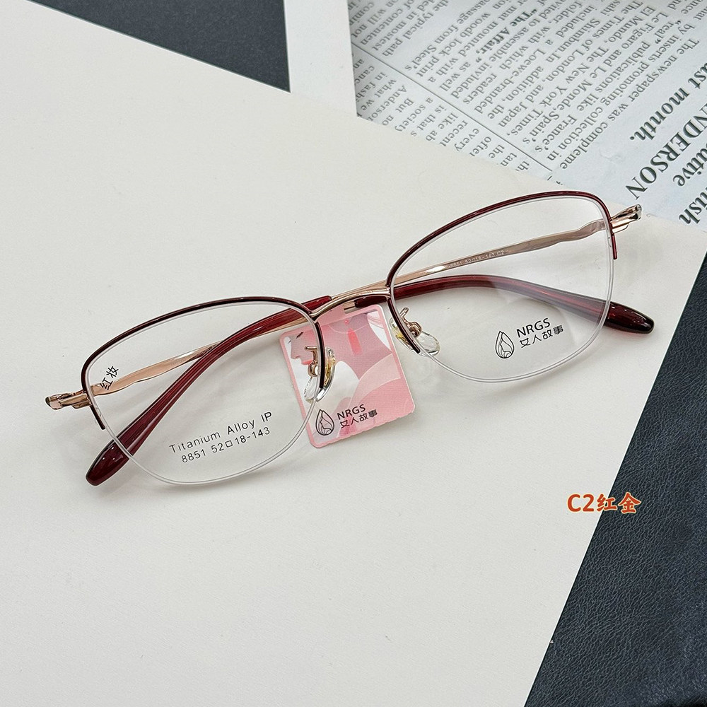 (女人故事)超轻钛架窄框半框眼镜框女老花近视可配度数妈妈镜架
