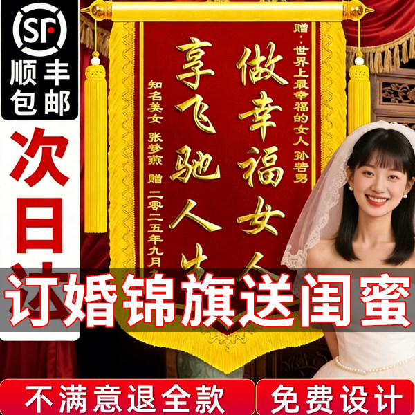 订婚锦旗定制定做送闺蜜搞笑趣味旌旗礼物仪式感长辈贺喜生娃纪念日生日幸福女人创意设计高端高档创意风订做