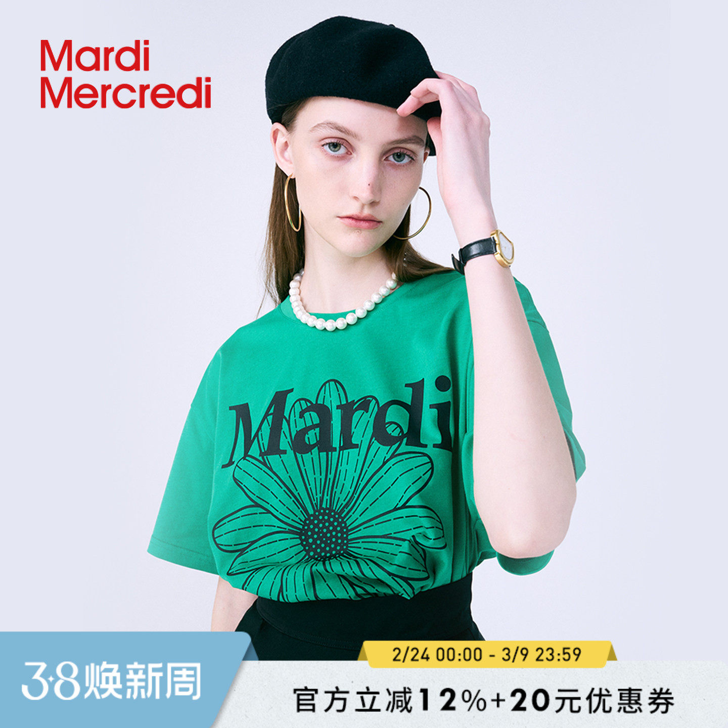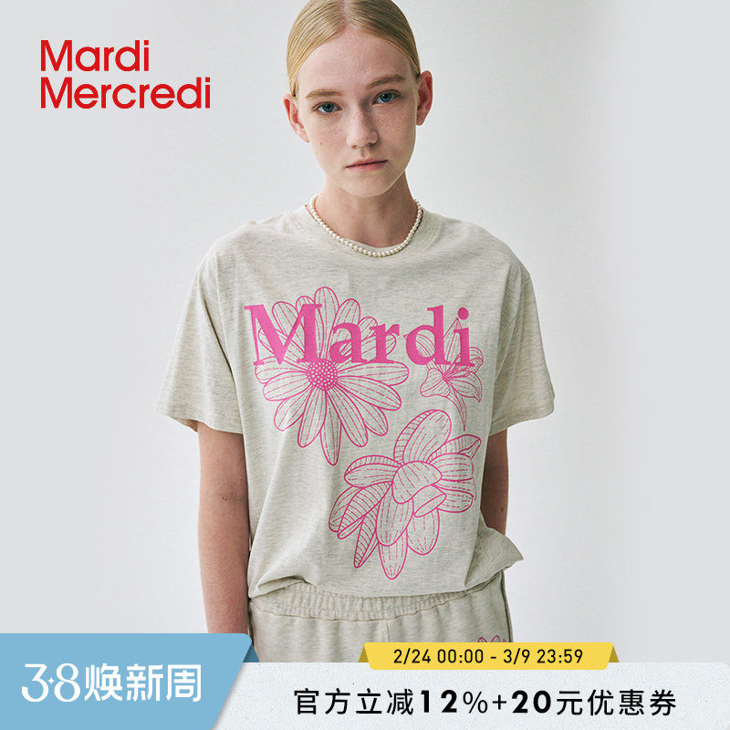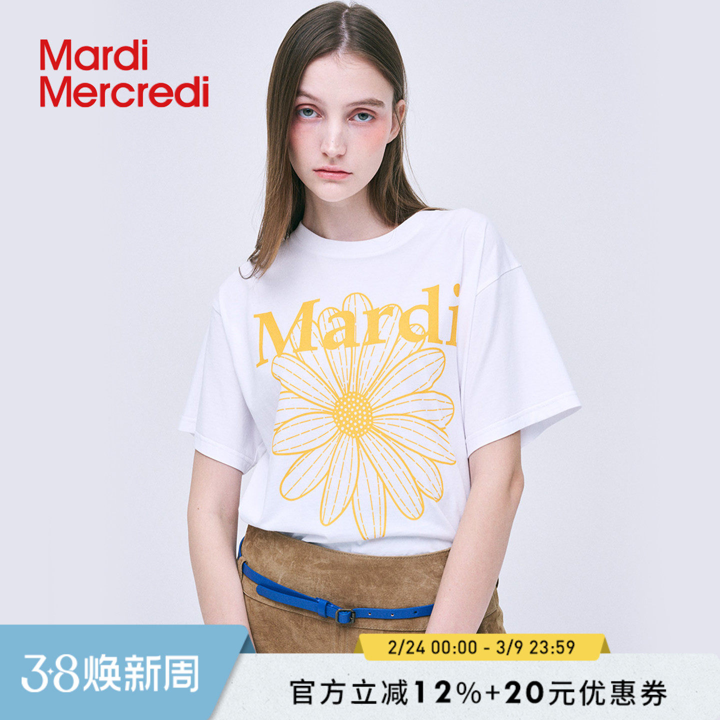 MardiMercredi小雏菊百合三花短袖t恤宽松上衣女夏季新款多巴胺