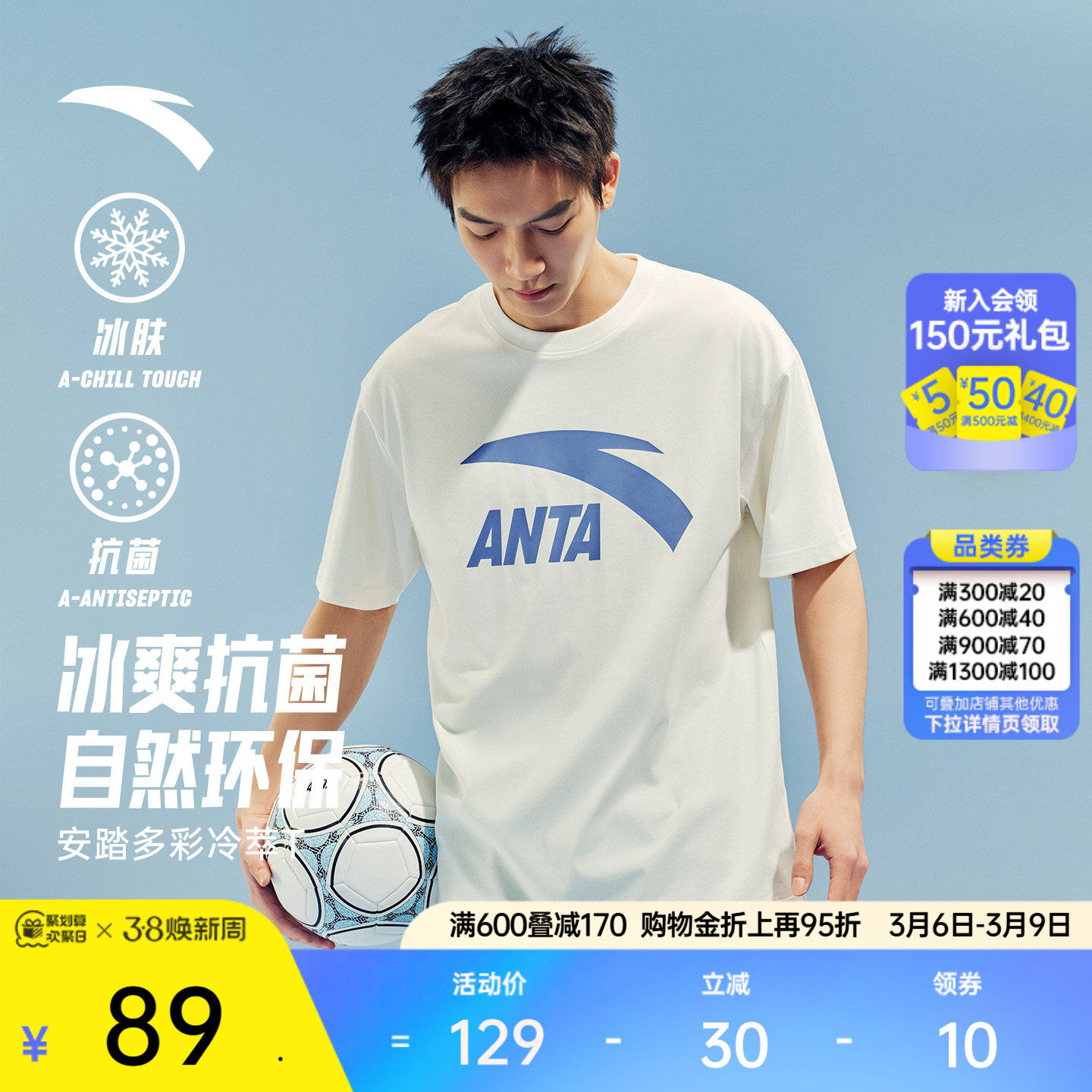 安踏休闲短袖t恤男女同款夏季新款圆领多彩运动上衣宽松冰丝半袖
