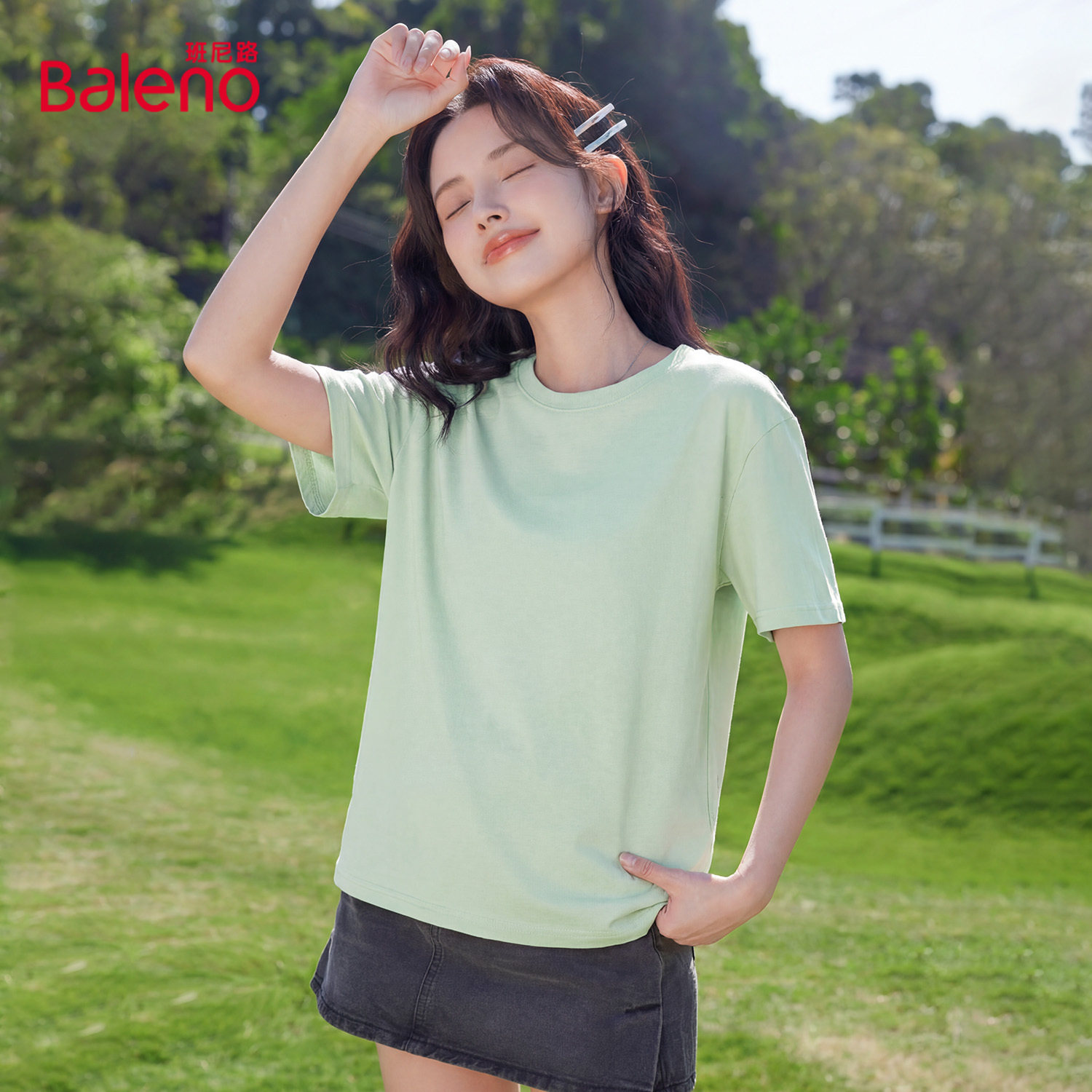 班尼路纯棉短袖t恤女2026新款夏季宽松半袖打底衫小个子正肩上衣M