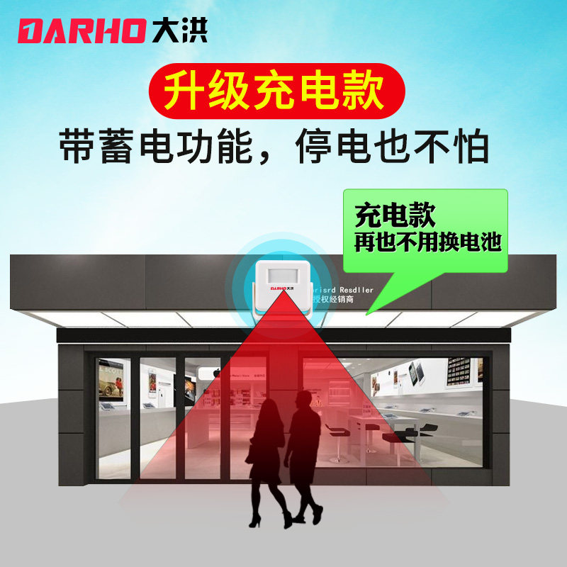 大洪 红外线智能感应门铃店铺家用报警器店铺进门欢迎光临感应器