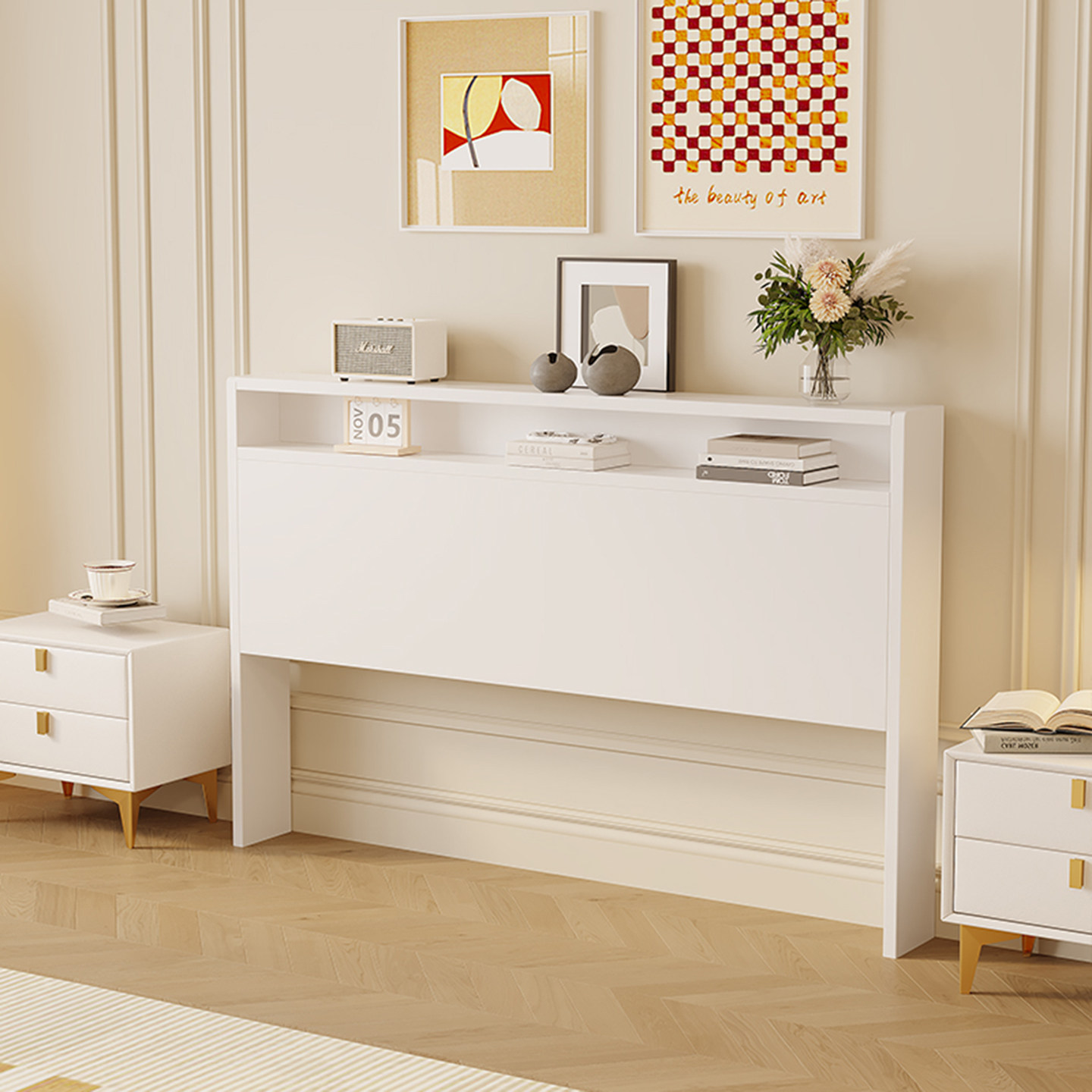 定制实木储物床头板简约款双人床头1.5米现代榻榻米床头背板单买