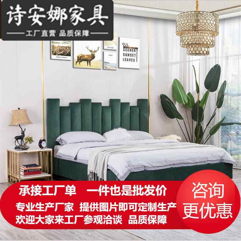 简约现代轻奢北欧天鹅绒墨绿色主卧布艺床意式风格创意双人床婚床