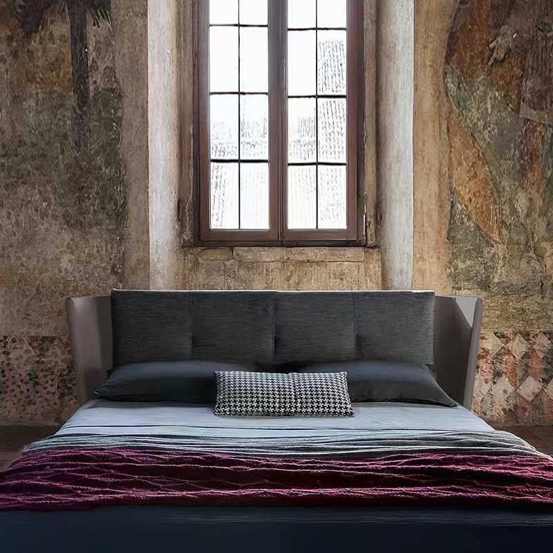 意式极简布艺床现代简约设计师创意网红ins风别墅棉麻双人床婚床